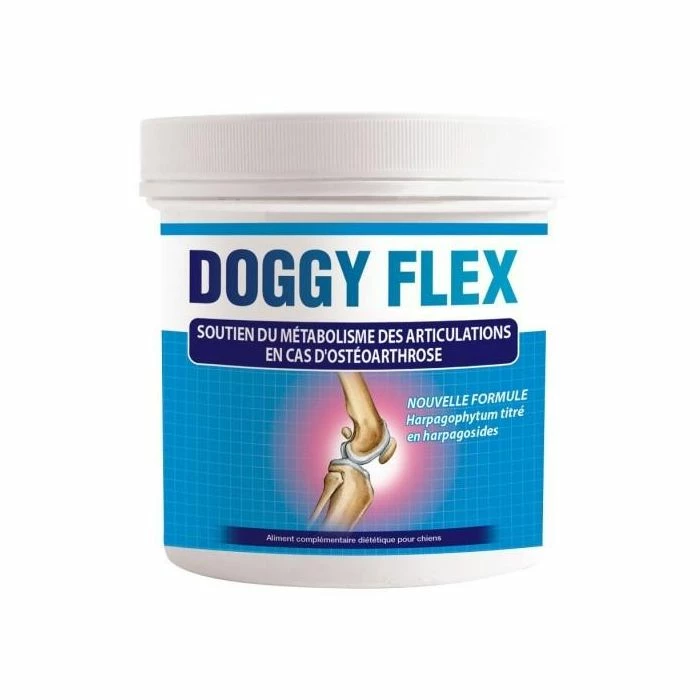 Doggy Flex est un complément alimentaire pour les chiens qui contribue à améliorer leur confort articulaire et à lutter contre l’usure des cartilages. Présenté sous forme de mini-granulés, ce supplément nutritionnel appétent est detiné au chien suivi pour troubles articulaires.