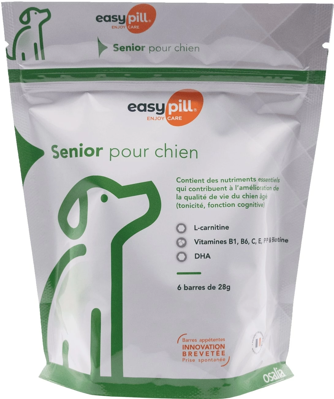 Riche en vitamines, L-carnitine et DHA, Easypill Chien Senior contribue à améliorer la qualité de vie du chien âgé (tonicité, fonction cognitive).