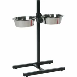 Support d’alimentation ergonomique car il est réglable en hauteur avec 2 gamelles en acier inoxydable, diamètre 27cm (4000ml)