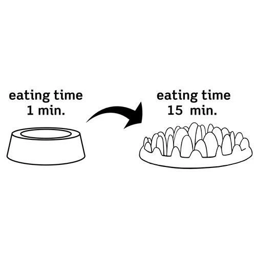 Parsemez la quantité de nourriture souhaitée dans le distributeur pour que votre chien s’occupe de la pousser vers l’extérieur. Un jeu stimulant et bon pour sa santé digestive !