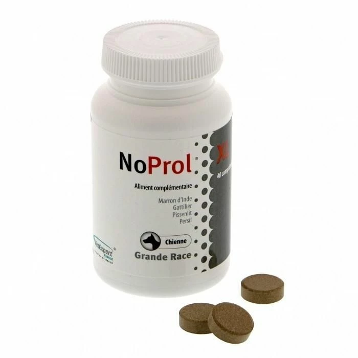 Le complément alimentaire NoProl de Vetexpert est destiné aux chiennes présentant des signes de grossesse nerveuse (lactation de pseudo-gestation).