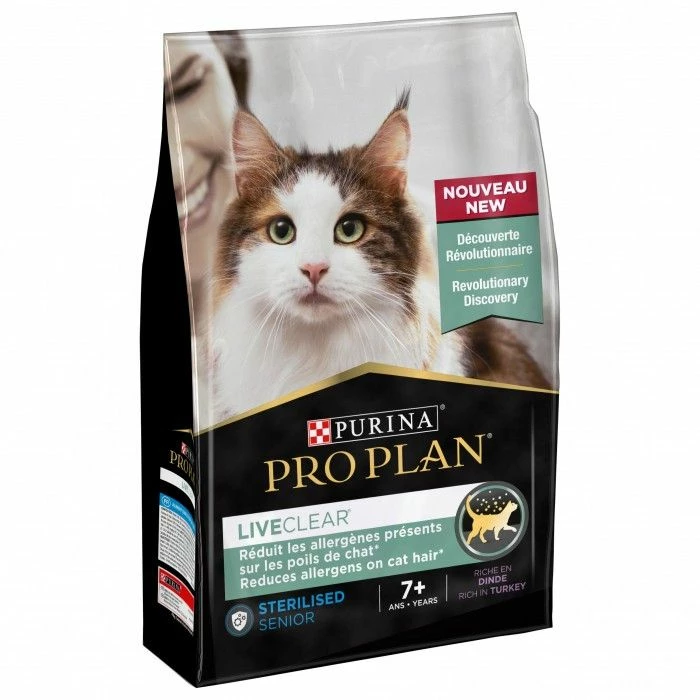 PRO PLAN® LiveClear® a le pouvoir de réduire les allergènes sur les poils de chat, dans un aliment pour chat stérilisé senior (7 ans et +) de haute qualité pour soutenir les fonctions vitales clé et maintenir une bonne condition corporelle, pour une bonne santé, plus longtemps.