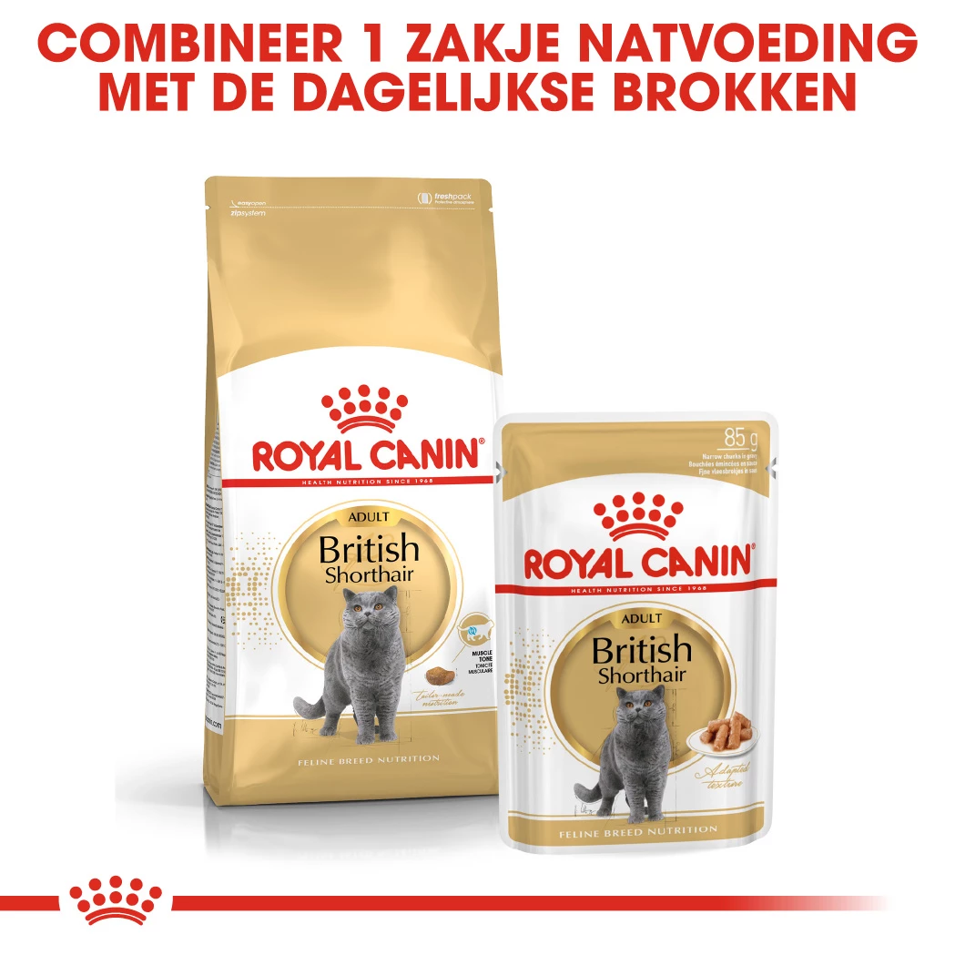 Pour répondre aux préférences individuelles de chaque chat, ROYAL CANIN® British Shorthair Adult est également disponible sous forme humide en un délicieux émincé. Si vous envisagez une alimentation mixte, il vous suffit de suivre nos instructions pour vous assurer que votre chat reçoit la quantité de nourriture sèche et humide nécessaire pour un bénéfice optimal.