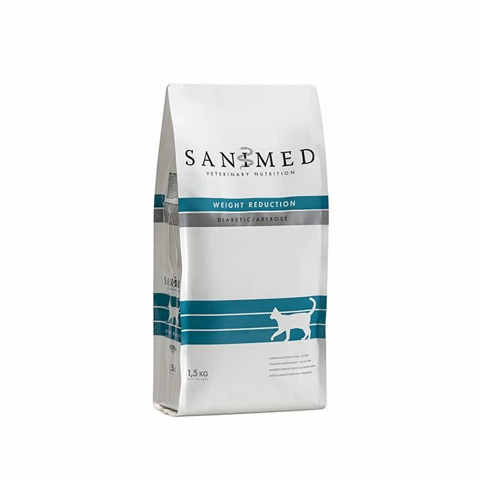 Lorsque votre chat est en surpoids ou sensible à son développement, un régime alimentaire adapté peut lui permettre d’atteindre et/ou de conserver son poids idéal. En outre, SANIMED Weight Reduction soutient également votre chat en cas de cystite, de problèmes articulaires, de diabète.