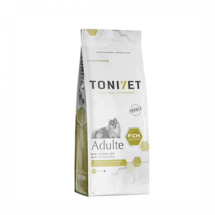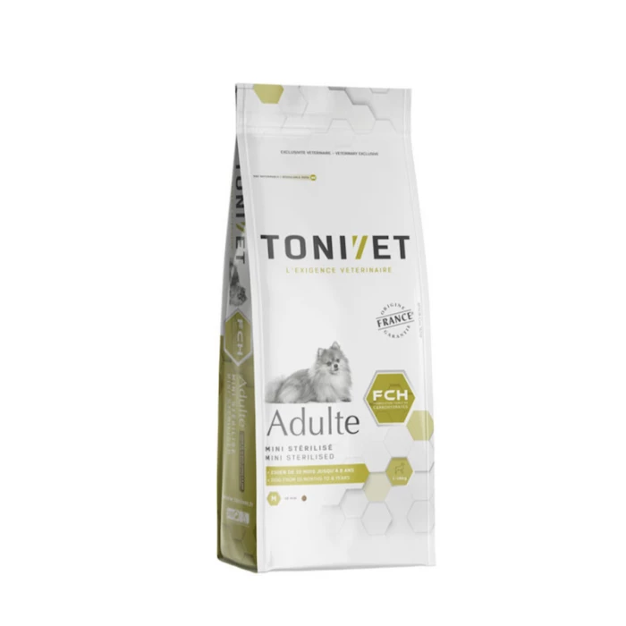 - Tonivet Adulte Mini Stérilisé convient parfaitement pour les chiens jusque 10 kg de poids vif.