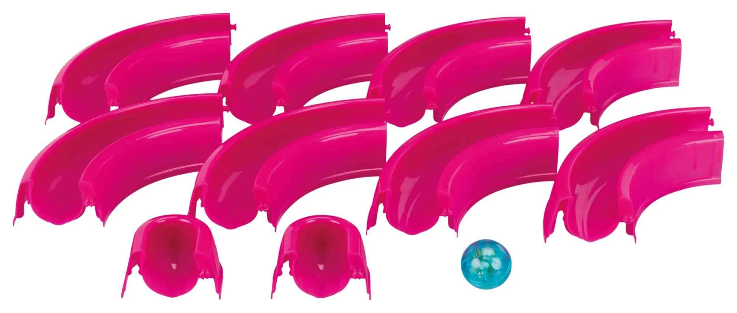 Trixie Cat toys Flashing Ball Race Pink 65×31 cm, jeu super fun pour chat. Les parties de cette piste peuvent être connectées de manière aléatoire, ce qui vous permet de lui donner différentes formes. Elle contient une balle clignotante qui déclenche l’instinct de chasse de votre animal et avec laquelle il est très amusant de jouer dans l’obscurité.